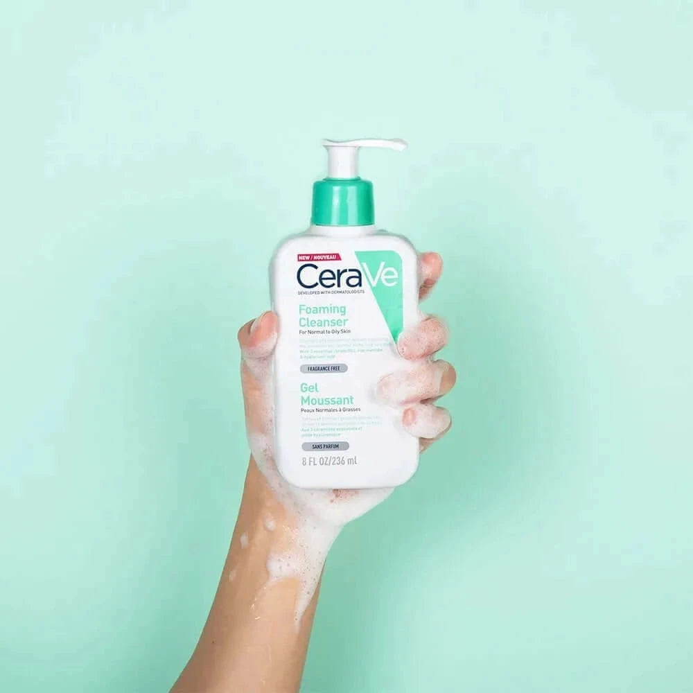 CeraVe Foaming Cleanser — пенящийся очищающий гель, который идеально подходит для удаления излишков кожного сала, грязи и макияжа. Это средство для нормальной или жирной кожи нежно очищает, не нарушая естественного защитного барьера кожи, что предотвращает сухость и появление трещин. Гель также помогает поддерживать влажность кожи, абсорбирует излишки кожного сала, уменьшает блеск и способствует длительному увлажнению.