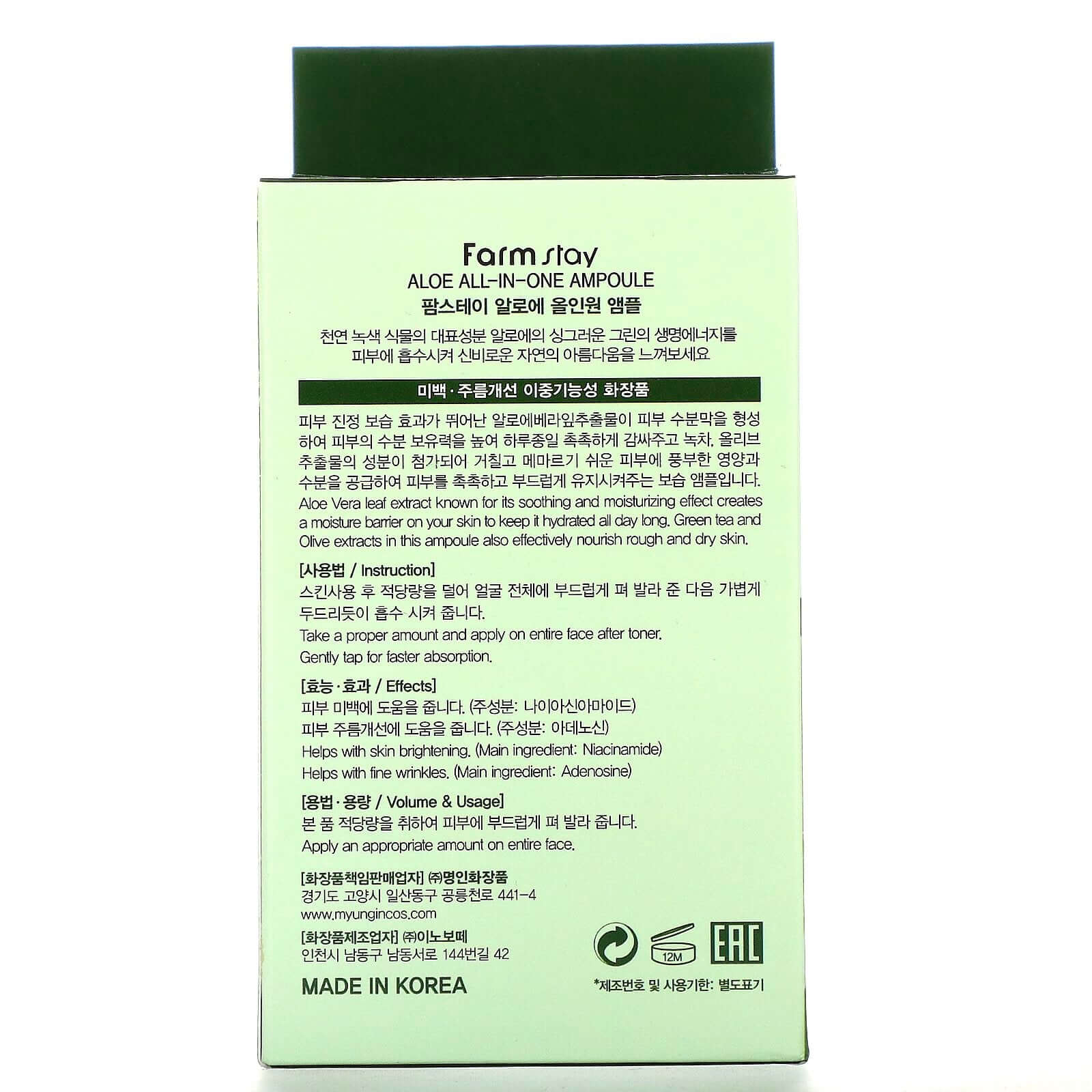 Farmstay All-In-One Ampoule Aloe — ваш идеальный выбор для комплексного ухода за кожей лица. Эта сыворотка объединяет в себе действие тоника, сыворотки и эмульсии, обеспечивая глубокое увлажнение и питание кожи благодаря насыщенной формуле на основе алоэ.