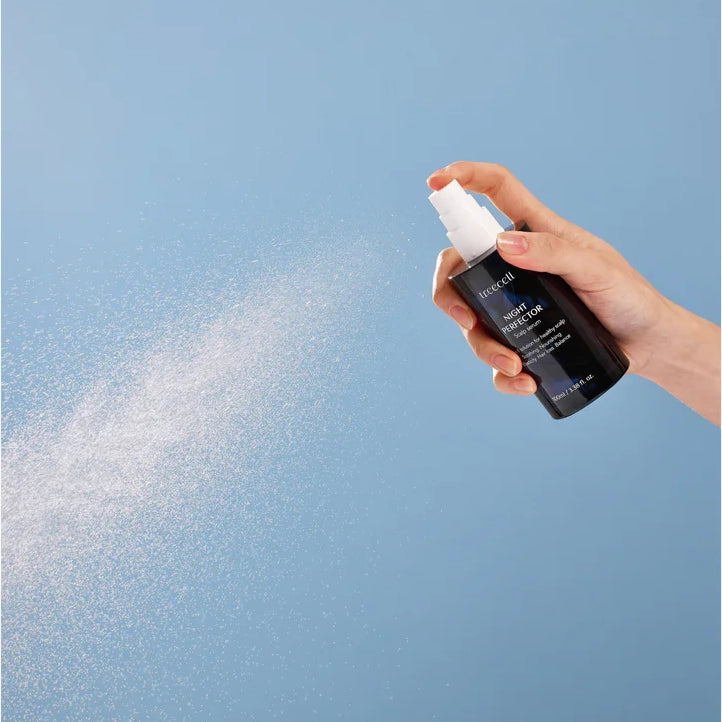 - Встряхните флакон и распылите Treecell Night Perfector непосредственно на кожу головы утром и вечером.