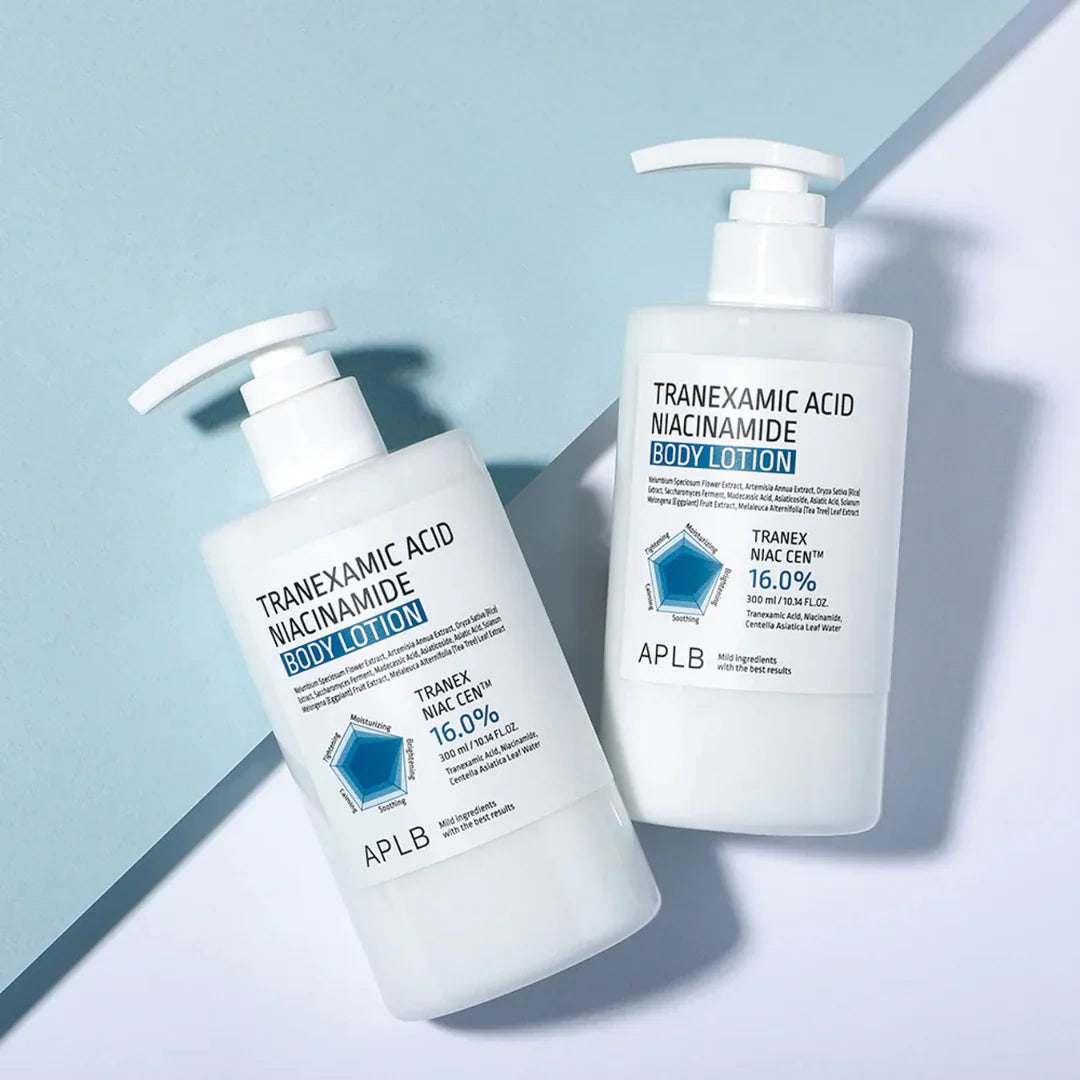 APLB Tranexamic Acid Niacinamide Body Lotion — toitev kehakreem, mis pakub sügavat niisutust, vähendab kuivust ja aitab ühtlustada naha väljanägemist.