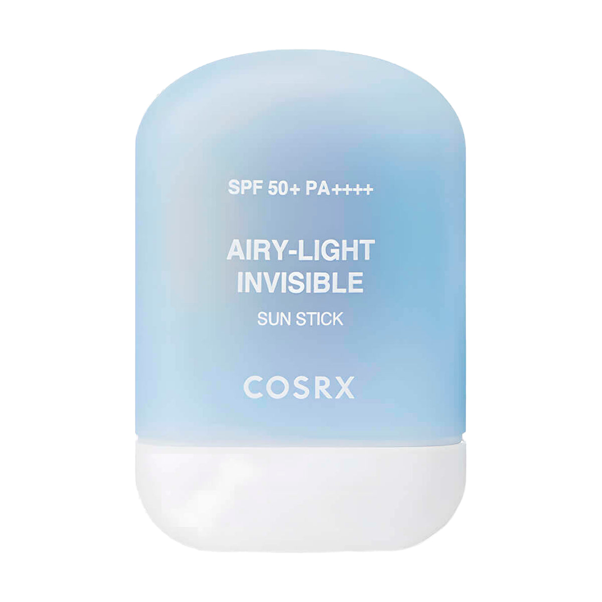 COSRX Airy-Light Invisible Sun Stick SPF50 PA++++ – kerge, läbipaistev päikesekaitsevahend pulga kujul, mis tagab kõrge kaitse UV-kiirguse eest.