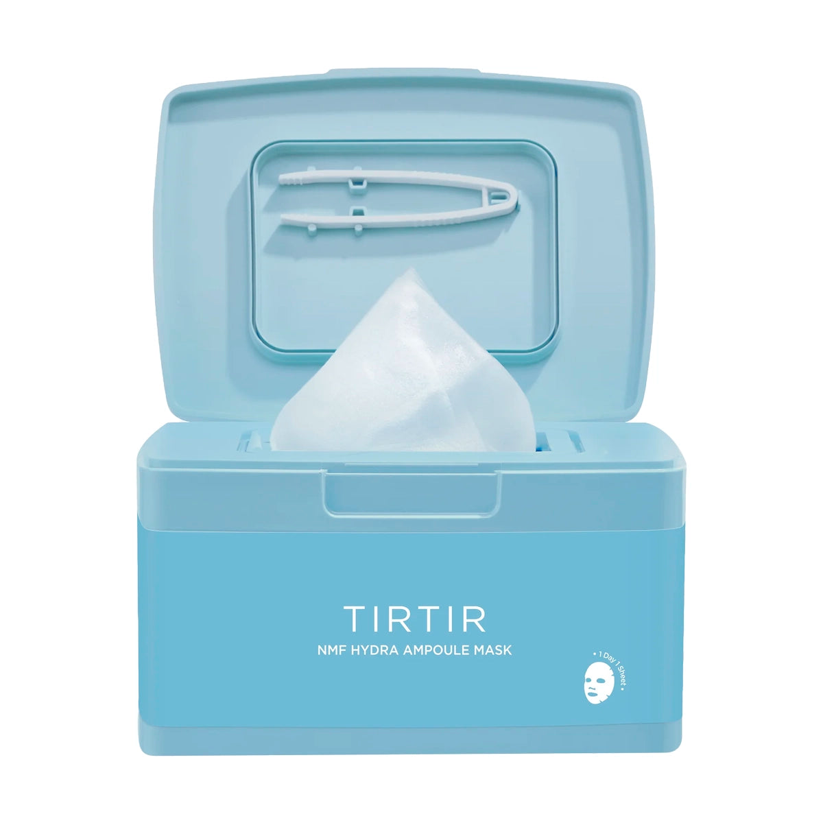 TIRTIR NMF Hydra Ampoule Mask — intensiivselt niisutavate kangasmaskide komplekt, mis sisaldab 8 tüüpi hüaluroonhapet ja aminohappeid, taastades naha tasakaalu ja elastsuse.