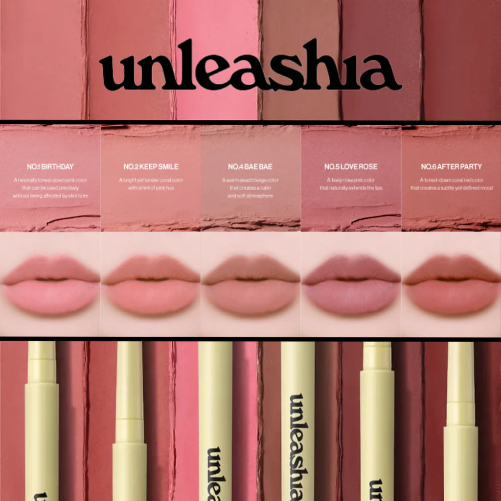 UNLEASHIA Oh! Happy Day Lip Pencil — mitmeotstarbeline kreemja koostisega pliiats, mis sobib huultele, laugudele ja põskedele, jättes nahale sametiselt mati viimistluse.