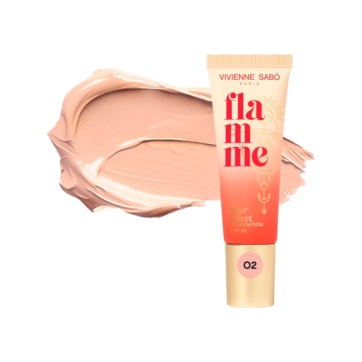Vivienne Sabo Flamme Blur Effect Foundation on SPF 20-ga jumestuskreem, mis ühtlustab naha väljanägemist, annab loomuliku sära ja pakub katvust keskmisest kuni tugevamani.