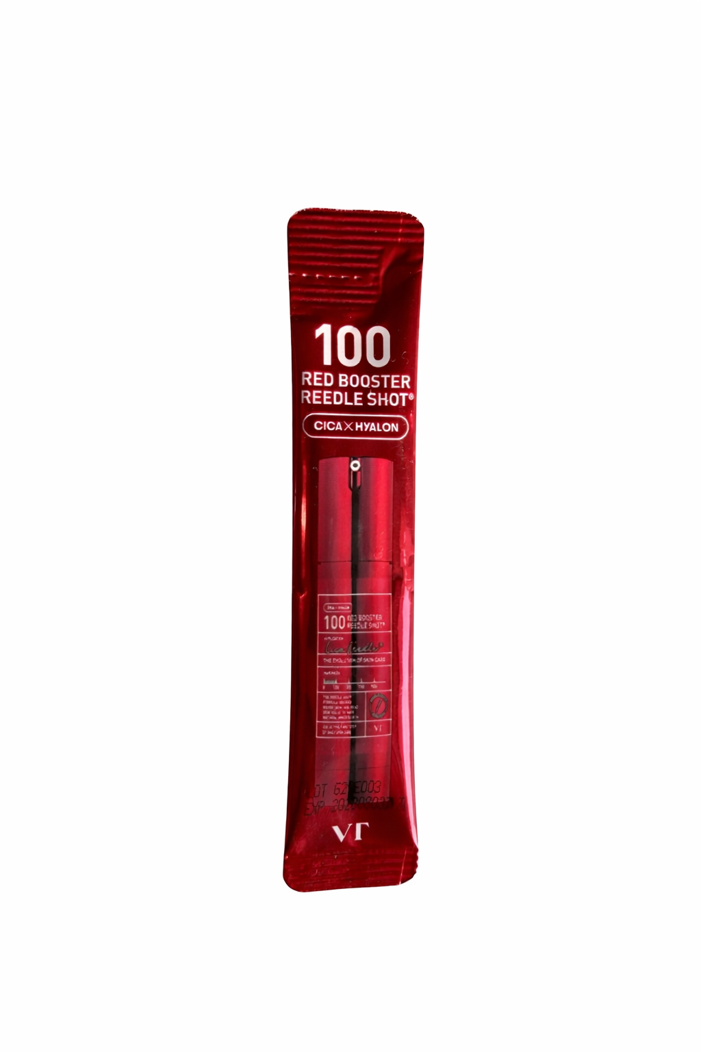 VT Cosmetics Red Booster Reedle Shot 100 — uuenduslik seerum, mis kombineerib mikroosakeste tehnoloogia ja Dragon Blood ekstrakti, et taastada naha tugevus ja vähendada vananemismärke.