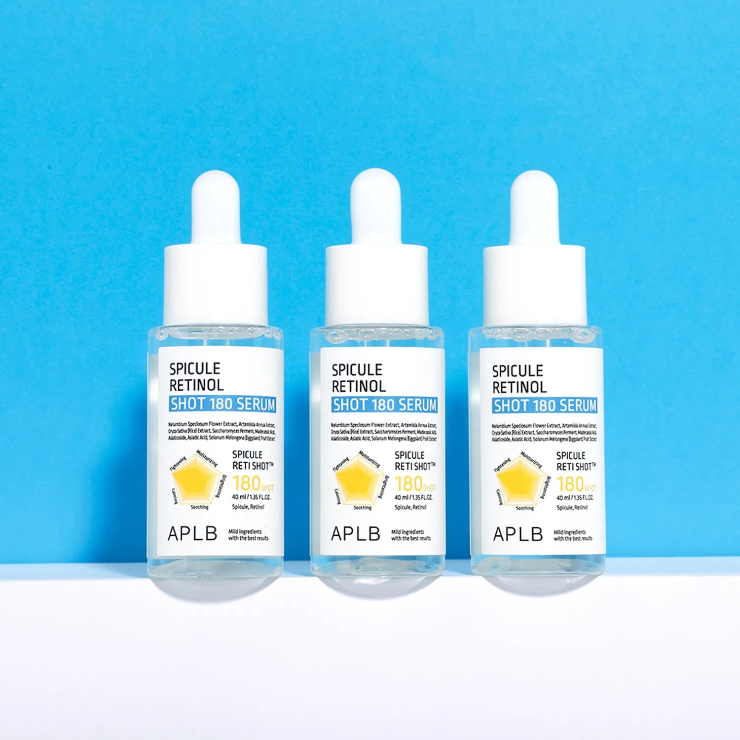 APLB Spicule Retinol Shot 180 Serum — нежная и эффективная сыворотка, которая активизирует обновление клеток, выравнивает рельеф и делает кожу упругой и сияющей.