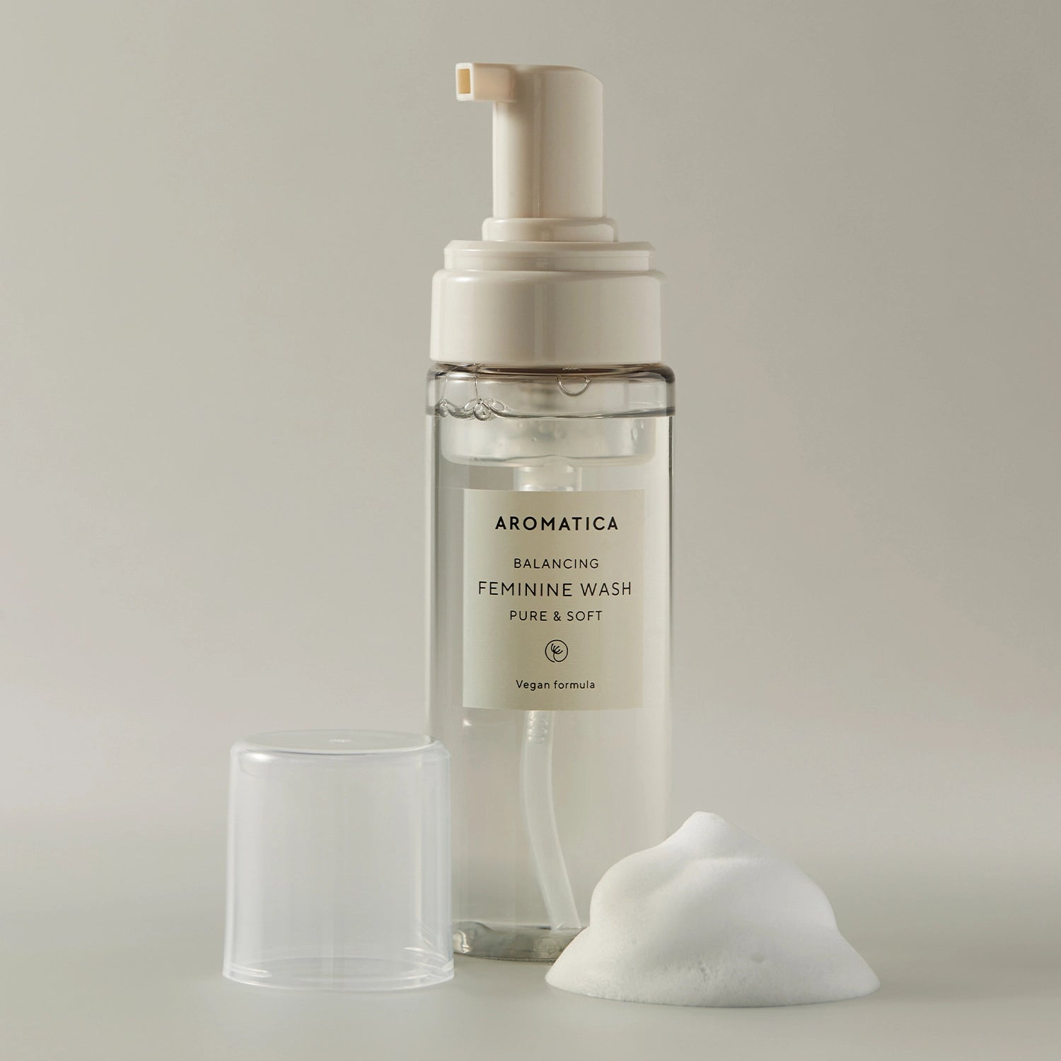 - Выдавите 2–3 нажатия Aromatica Balancing Feminine Wash Pure & Soft на ладонь.