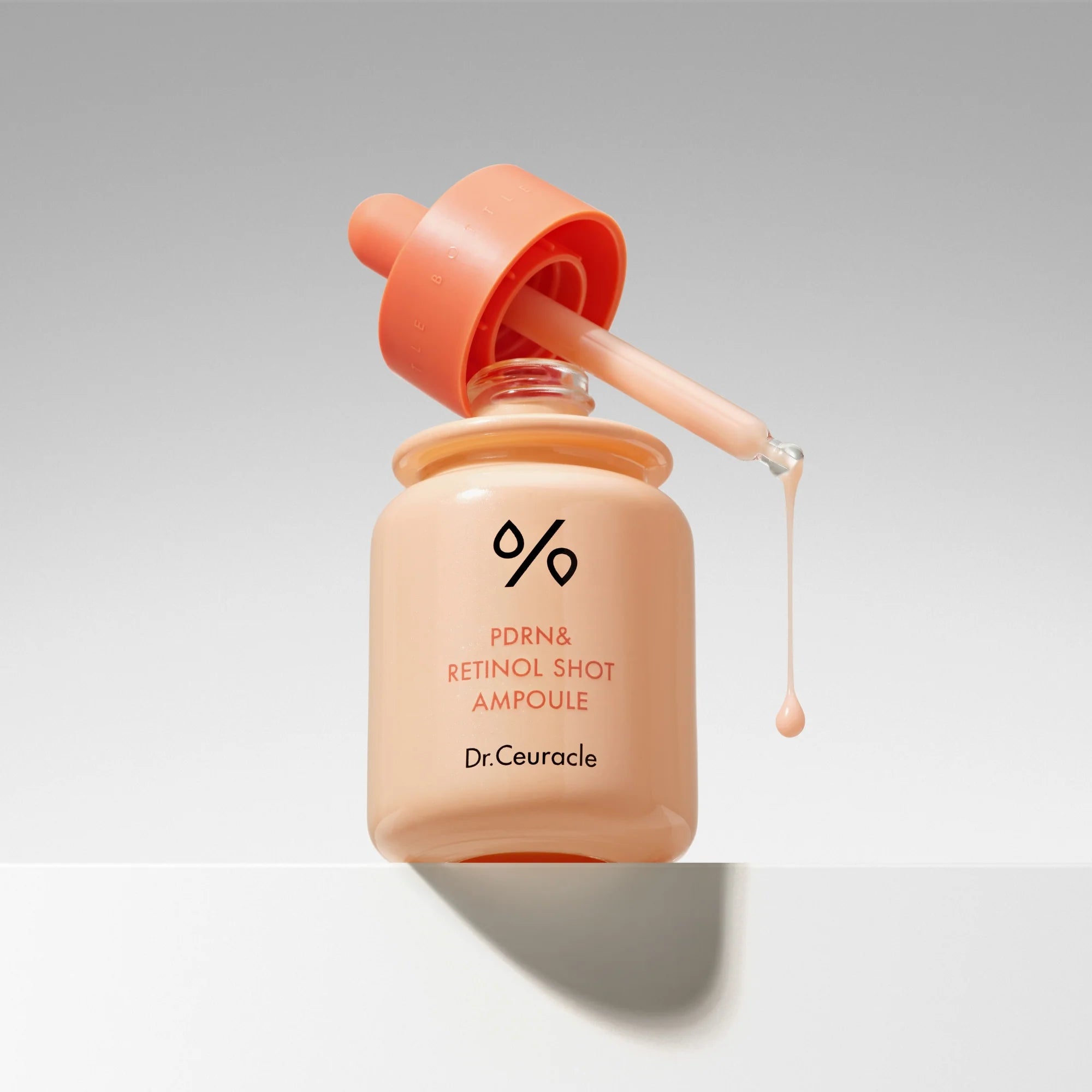 Dr. Ceuracle PDRN & Retinol Shot Ampoule — концентрированная ампула с PDRN и ретинолом в микроспикулах для более ровной текстуры, визуальной плотности и укрепления барьера кожи.