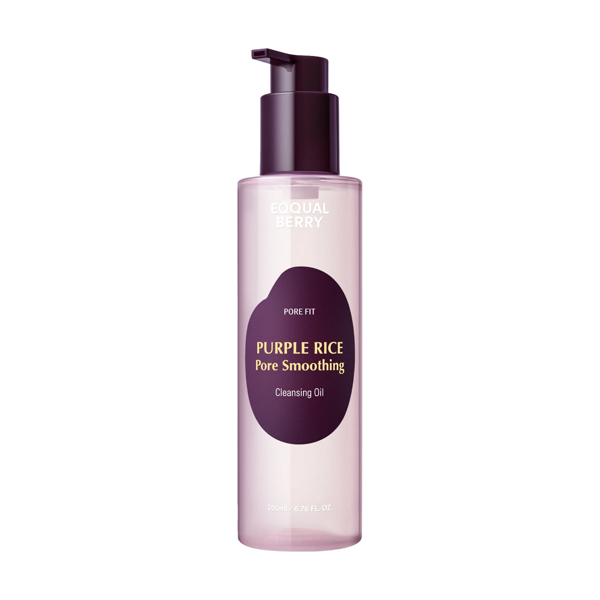 EQQUALBERRY Purple Rice Pore Smoothing Cleansing Oil — мягкое средство для умывания, которое эффективно удаляет макияж, очищает поры и улучшает текстуру кожи без ощущения сухости.