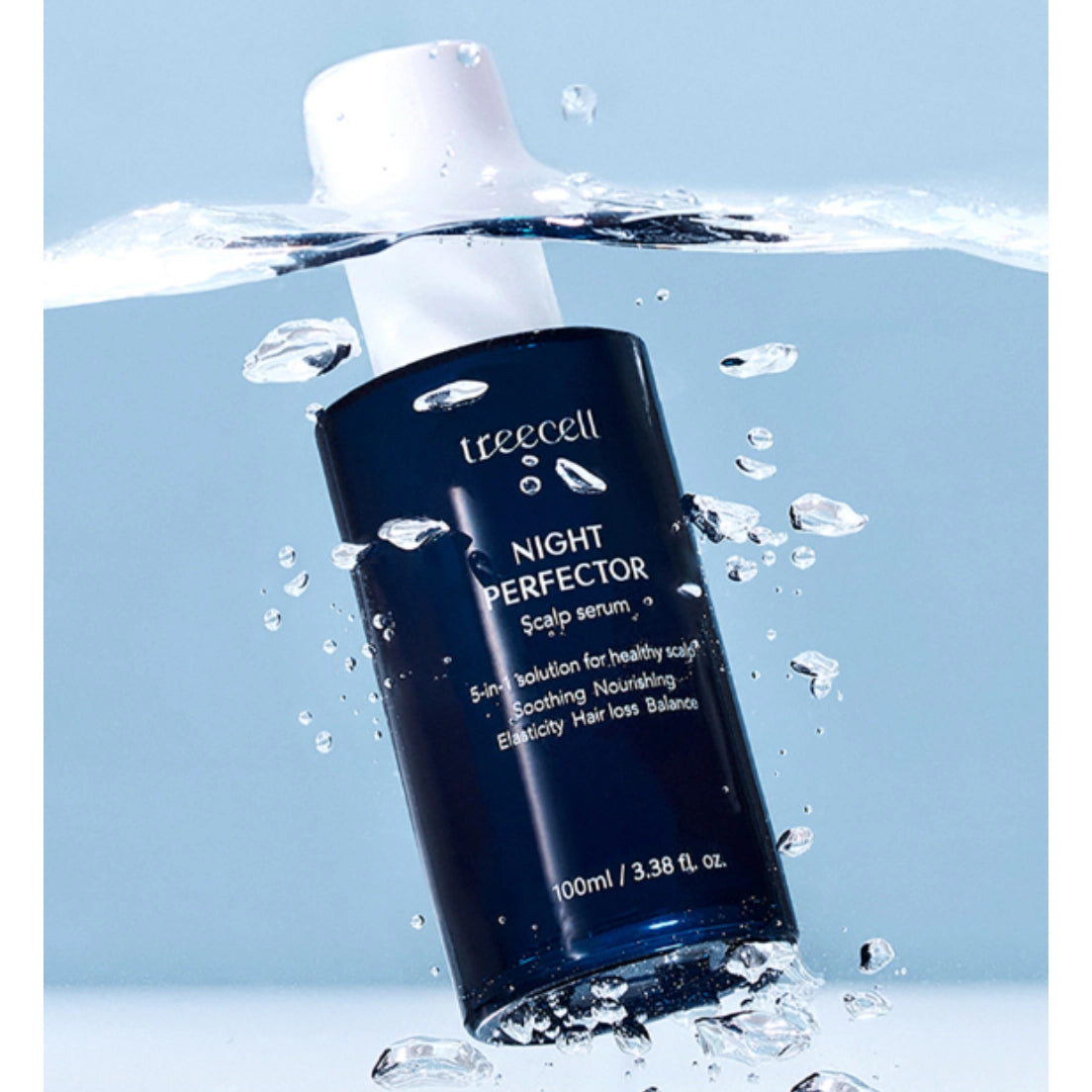 Treecell Night Perfector — интенсивный ночной серум с чайным деревом, растительным кофеином и коллагеном для укрепления корней, уменьшения выпадения волос и улучшения состояния кожи головы.
